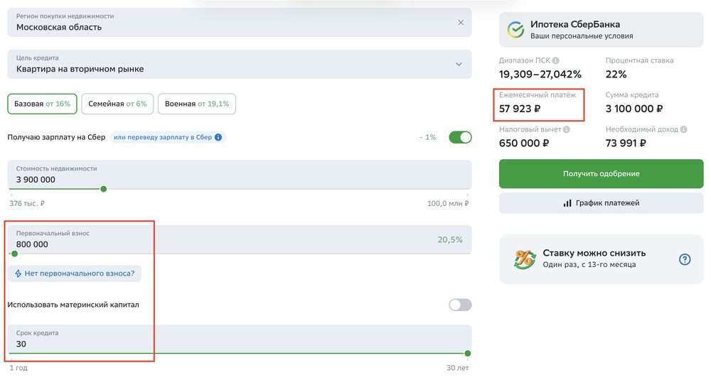 Но это все скорее глупости, и правильно было бы потратить деньги на собственное жилье — внести как первый взнос по ипотеке. Открываем калькулятор, вписываем наши 800 тысяч, платить будем 30 лет по 58 тысяч в месяц и можем идти выбрать себе квартиру за 4 миллиона. Совсем небольшую и не в Москве, но хоть что-то свое будет.