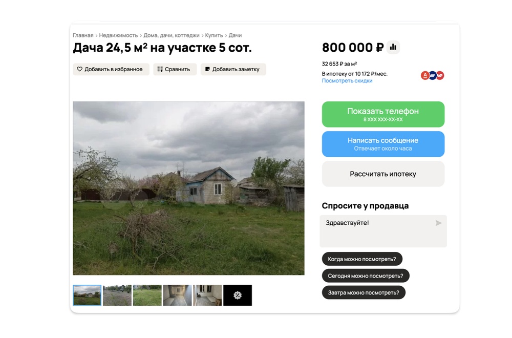 Ну а если ипотеку взять не получится, то 800 000 рублей хватит на домик на окраине города Крымск в Краснодарском крае. 24,5 квадратных метра. Ремонта нет. Газа нет. Канализации нет. Санузел — на улице.