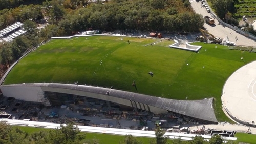 Но сам дворец это лишь часть огромного комплекса. На территории есть подземный хоккейный комплекс, который построить (а точнее врыть в землю) сложнее и дороже, чем сам дворец.